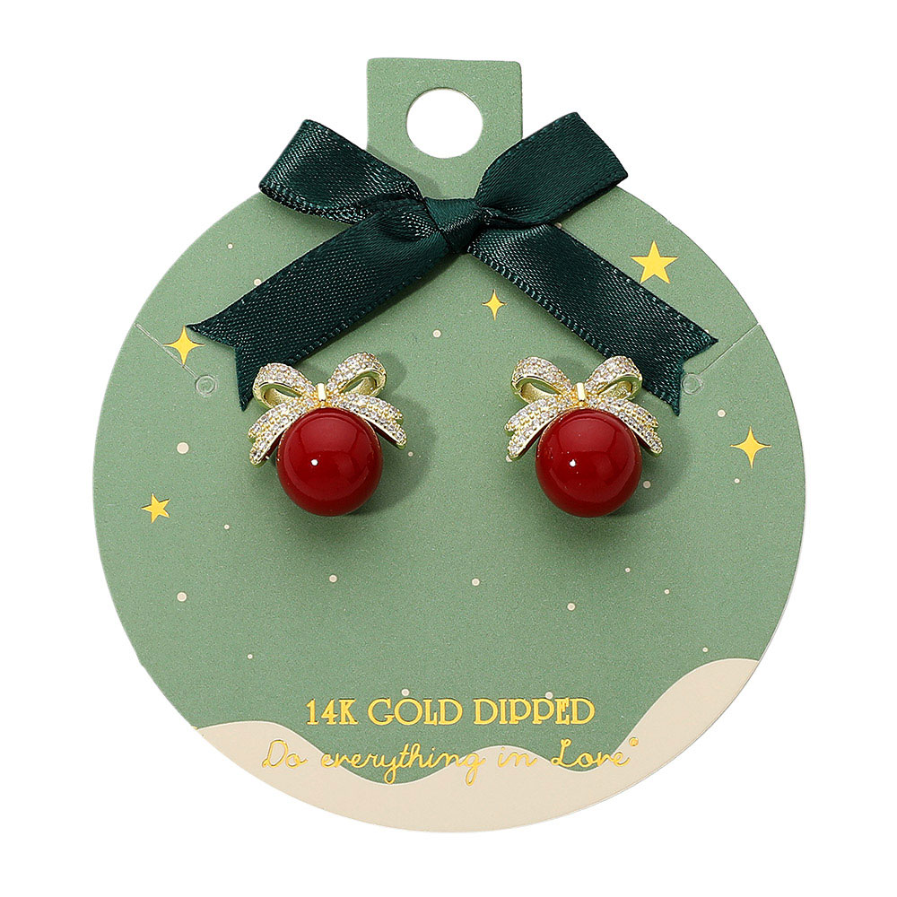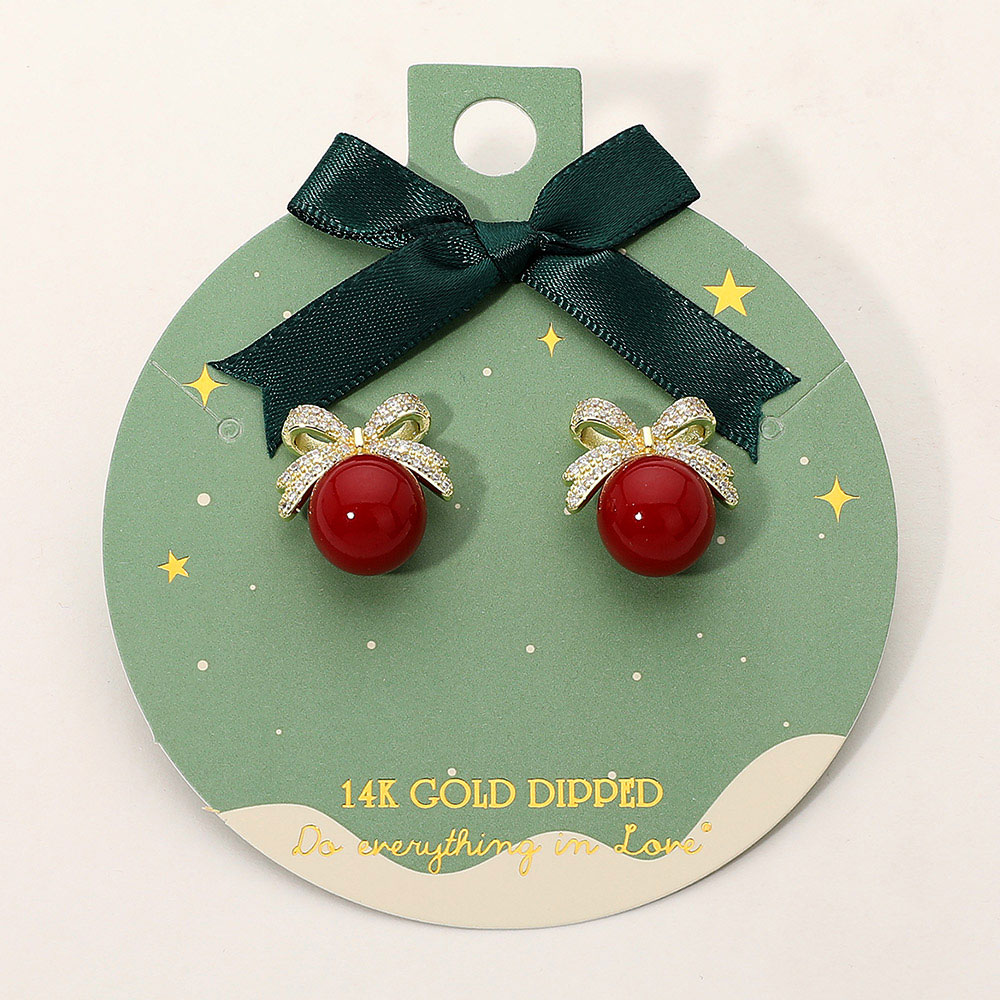 Details • Size : 0.75" X 0.75" • Post Back • Charming ball stud earrings topped with a sparkling bow accent for a festive, elegant touch. Their polished finish and petite design make them perfect for seasonal styling, gifting, or adding a playful yet refined detail to everyday outfits. A delightful accessory for celebrations and special moments. • Gold Dipped • Hypoallergenic • Lead and Nickel Compliant • Made In Korea