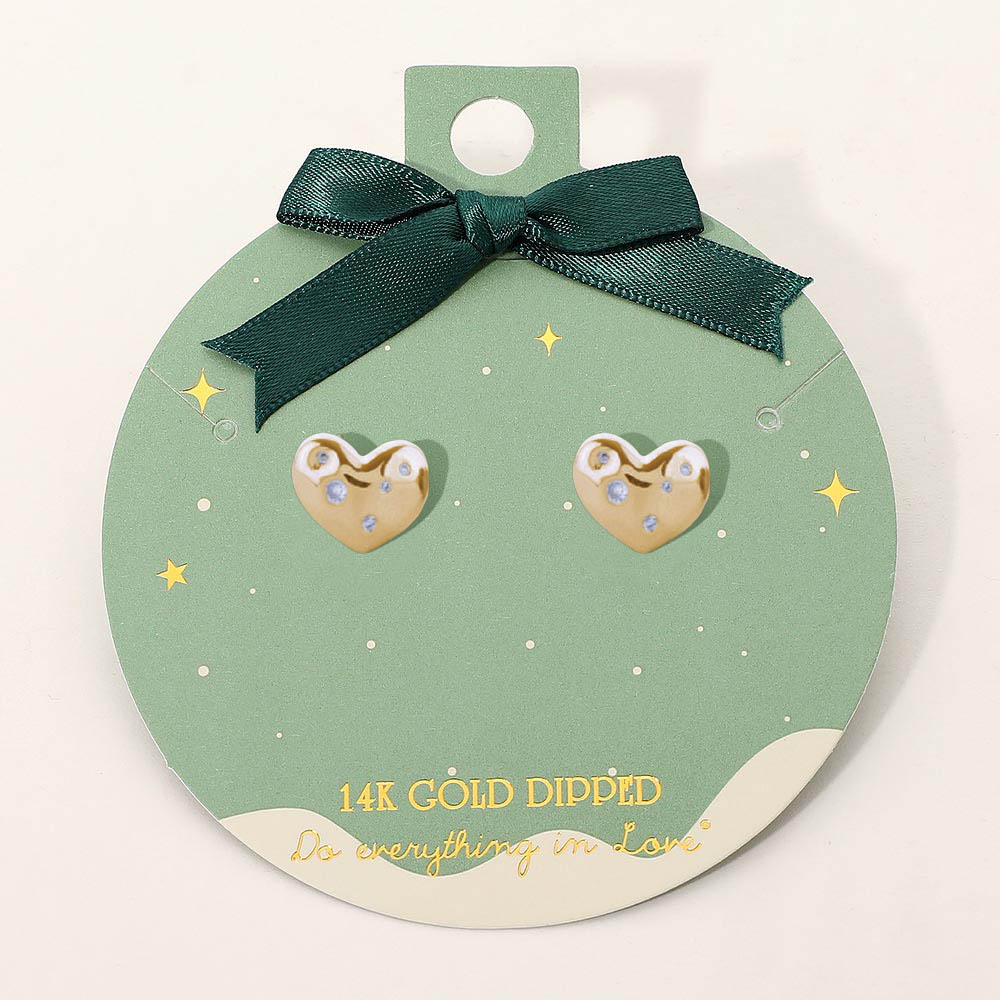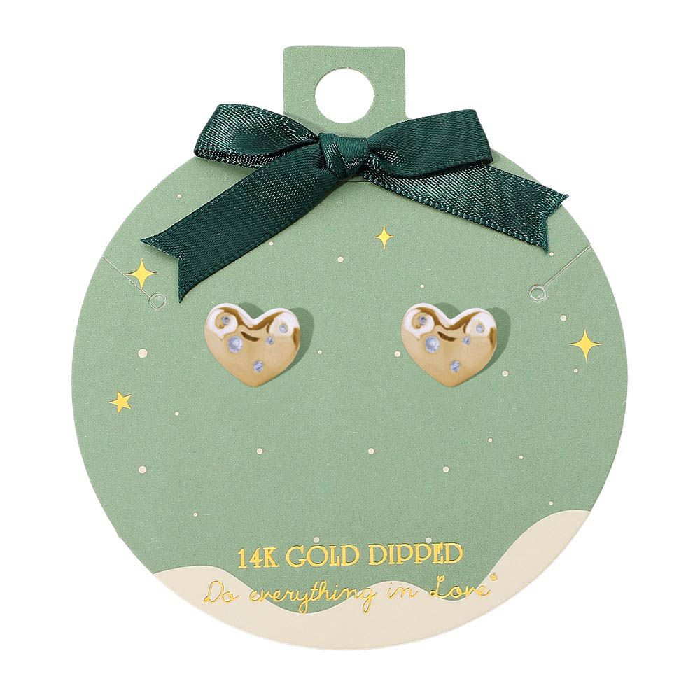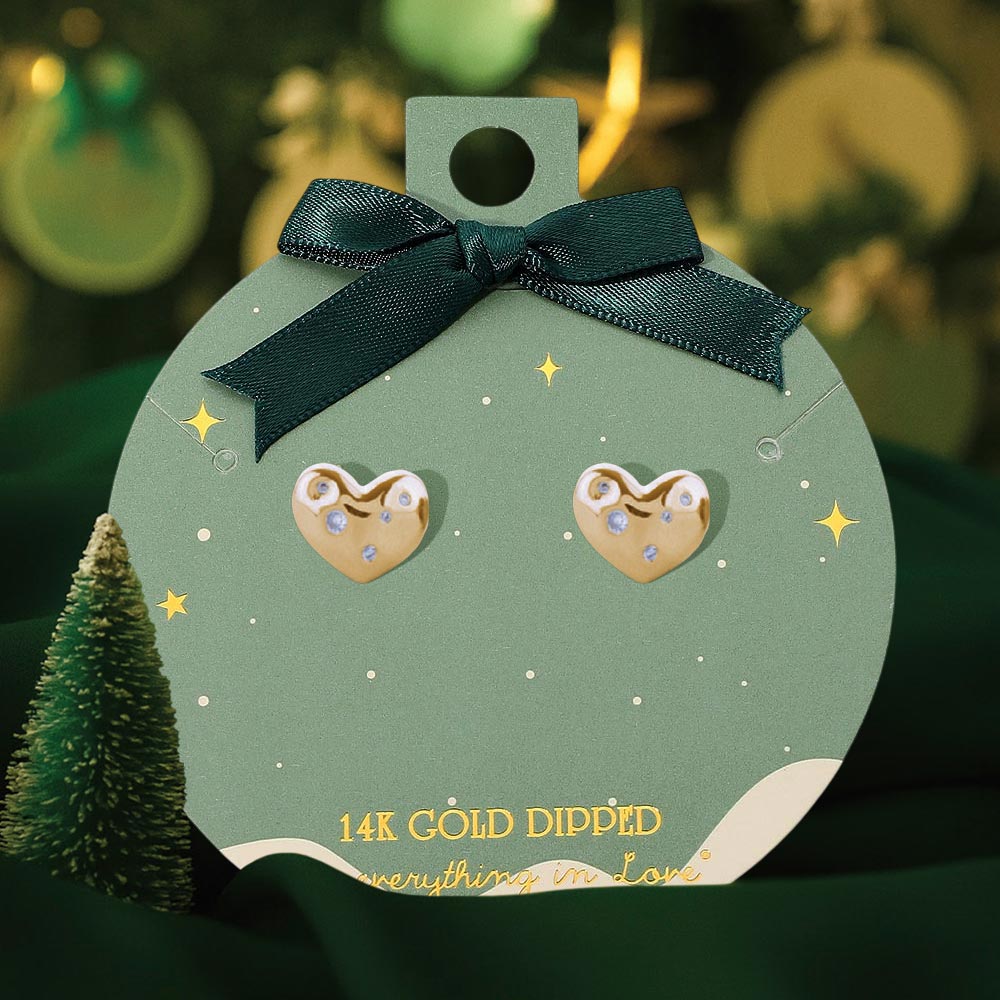Details • Size : 0.6" X 0.5" • Post Back • Charming heart stud earrings featuring subtle sparkling accents, presented on a beautiful gift-ready card with bow detail. A sweet and versatile accessory for everyday wear or thoughtful gifting, adding a touch of elegance to any jewelry collection. • Gold Dipped • Hypoallergenic • Lead and Nickel Compliant • Made In Korea