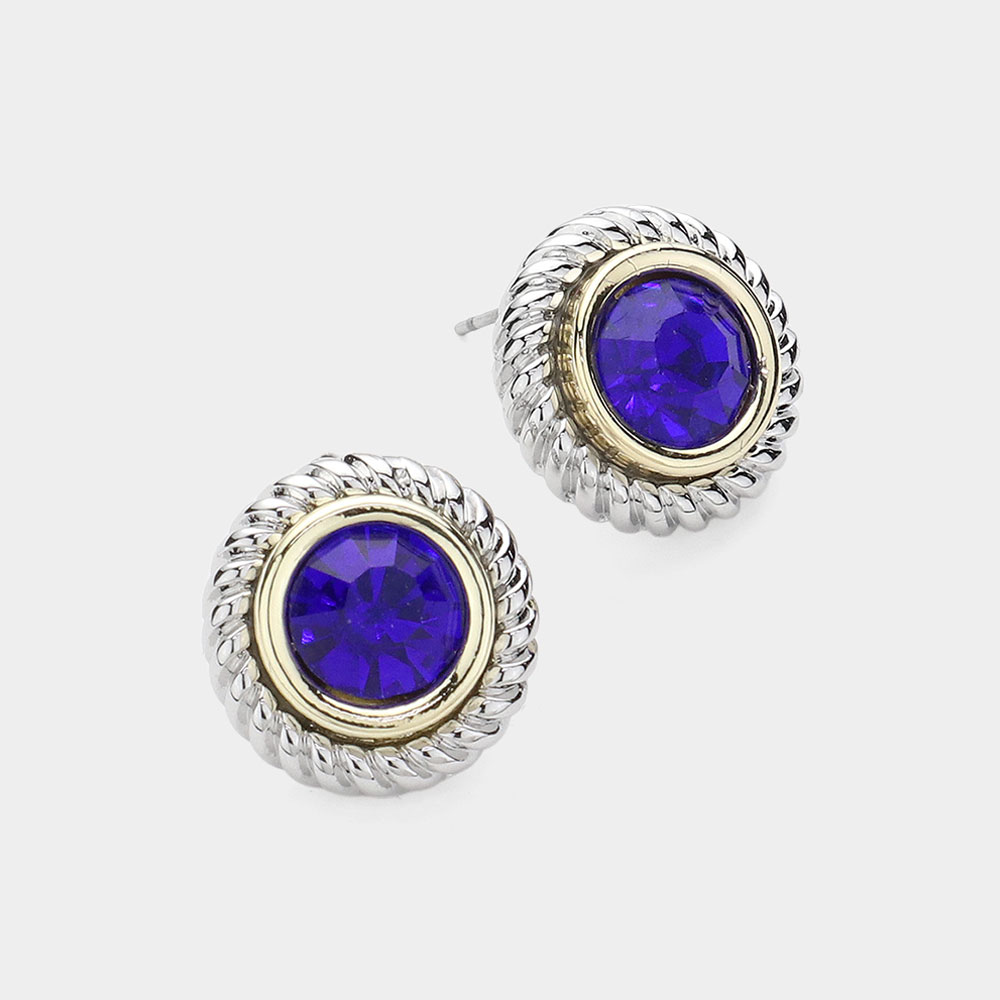 14K Gold Plated Round Stone Pointed Rope Rim Stud Earrings