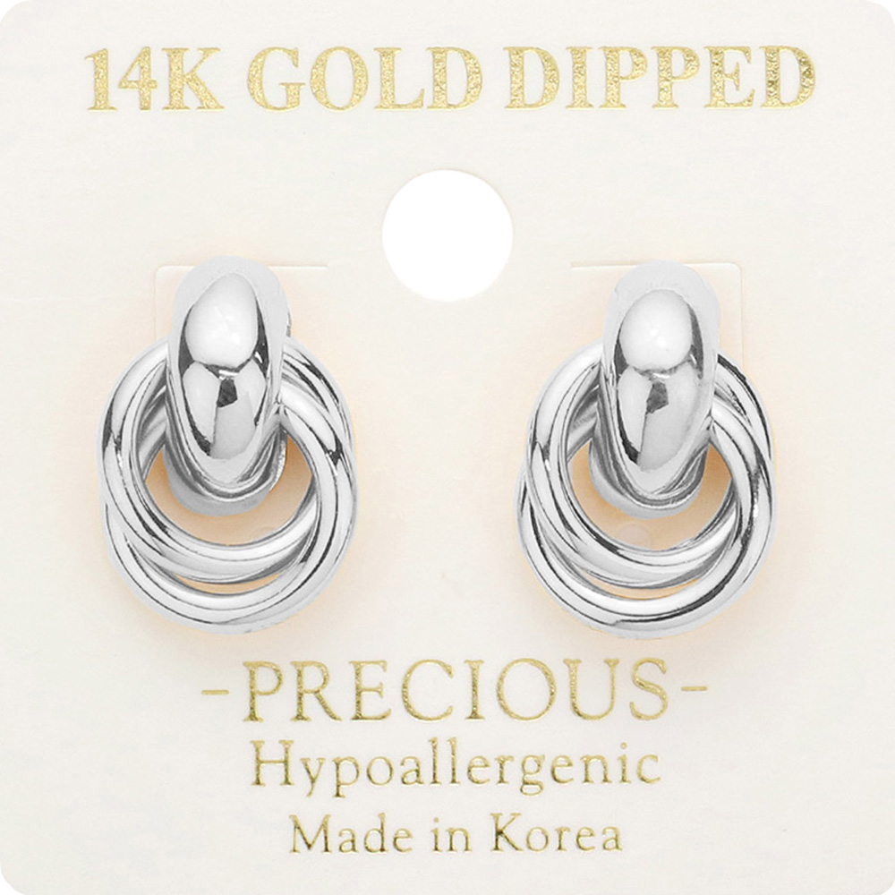 14K White Gold Dipped Hypoallergenic Double Hoop Pin Catch Earrings