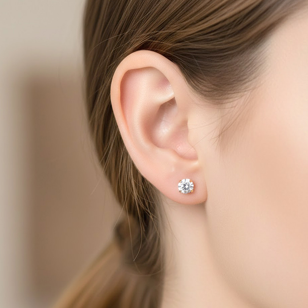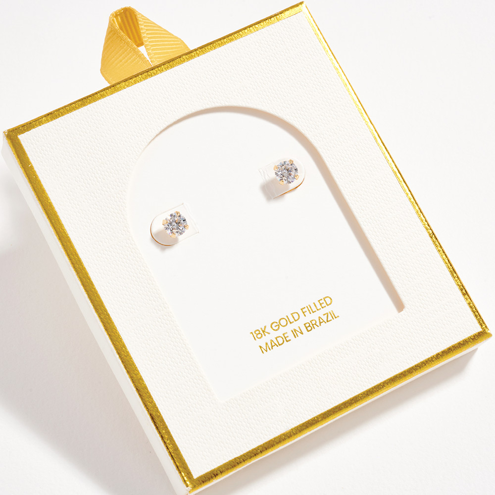Details • Size : 0.2" X 0.2" • Post Back • Timeless round CZ stud earrings designed for everyday elegance. Featuring a clean, minimal silhouette with brilliant sparkle, these studs are perfect for daily wear, work, or special occasions. A versatile essential that layers easily with other earrings or shines beautifully on its own. • CZ Cubic Zirconia • Gold Filled • Hypoallergenic • Lead and Nickel Compliant • Made In Brazil