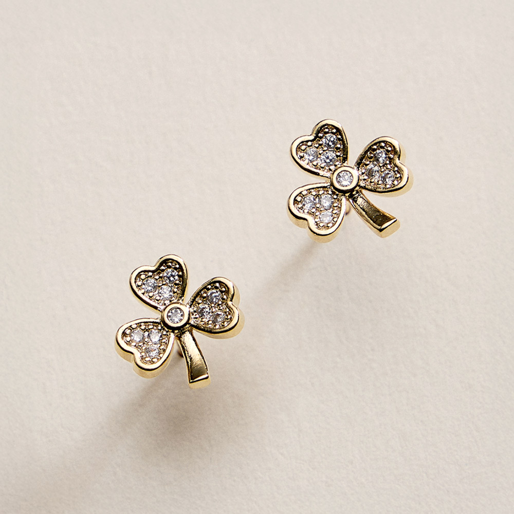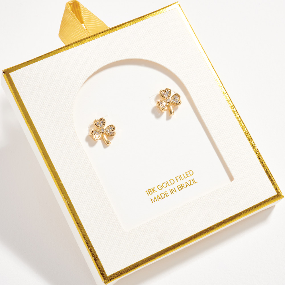 Details • Size : 0.4" X 0.4" • Post Back • Charming clover stud earrings designed with sparkling CZ accents for a delicate yet meaningful look. The compact stud style offers comfortable all-day wear, making them perfect for everyday styling, gifting, or adding a subtle symbol of luck and elegance to casual or dressed-up outfits. • CZ Cubic Zirconia • Gold Filled • Hypoallergenic • Lead and Nickel Compliant • Made In Brazil