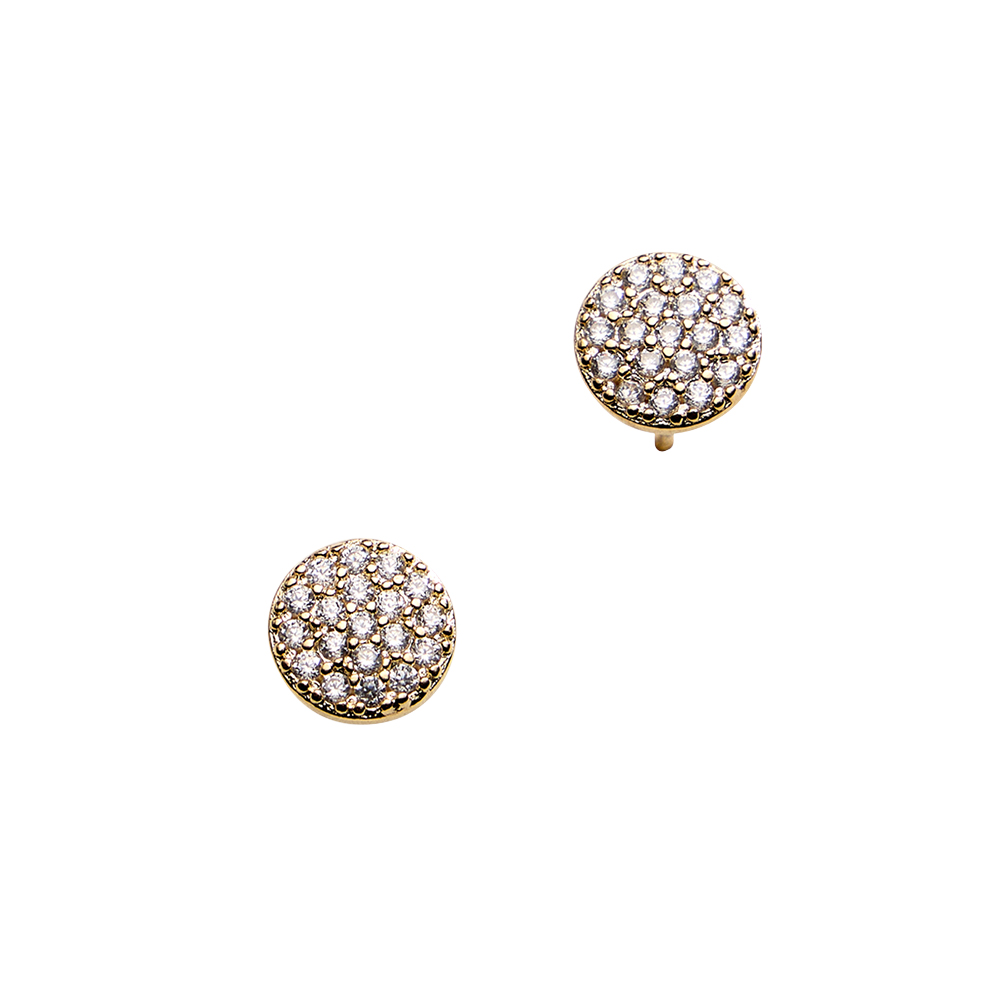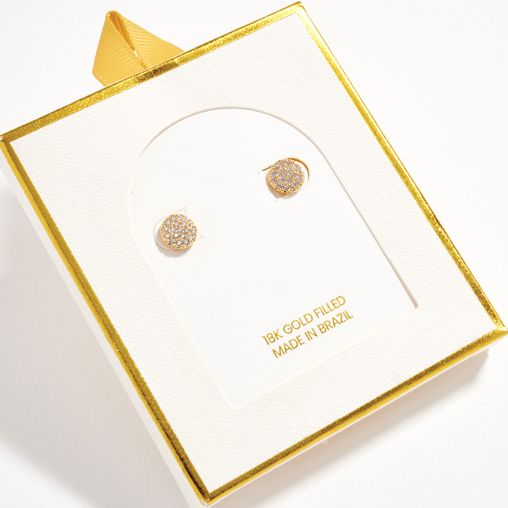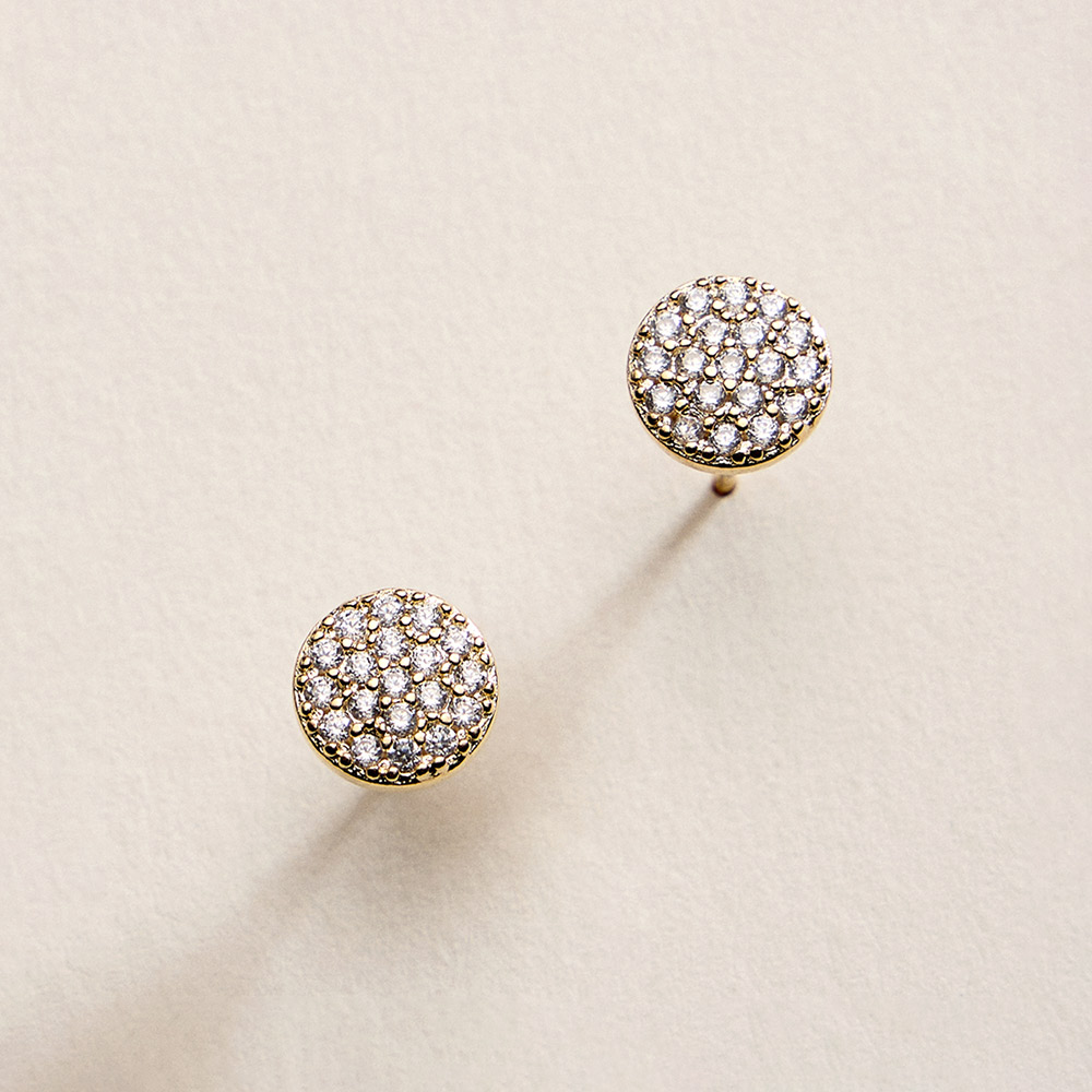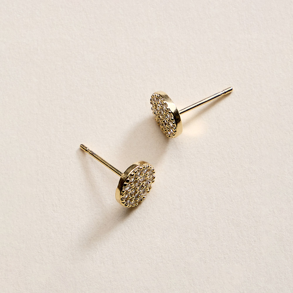 18K Gold Filled CZ Pave Mini Disc Stud Earrings