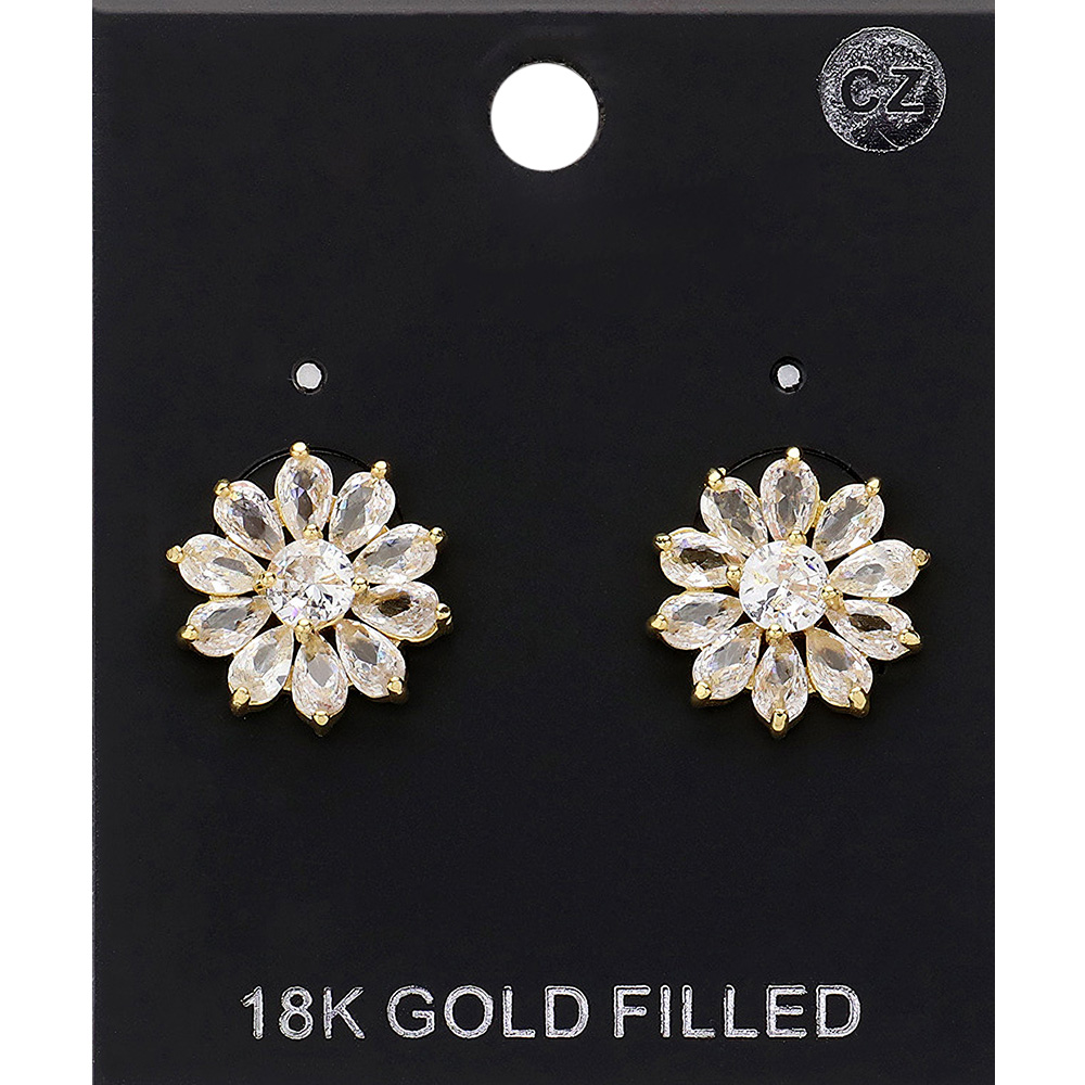 18K Gold Filled Round CZ Stone Pointed Flower Stud Earrings