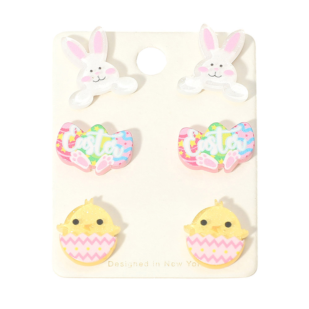 3Pairs - Easter Bunny Egg Chick Stud Earring Set 3Pairs - Easter Bunny Egg Chick Stud Earring Set