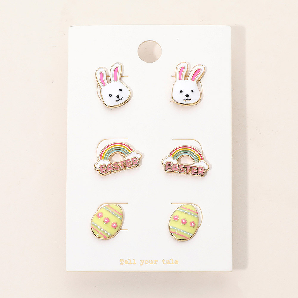 3Pairs - Easter Bunny Egg Rainbow Stud Earring Set 3Pairs - Easter Bunny Egg Rainbow Stud Earring Set