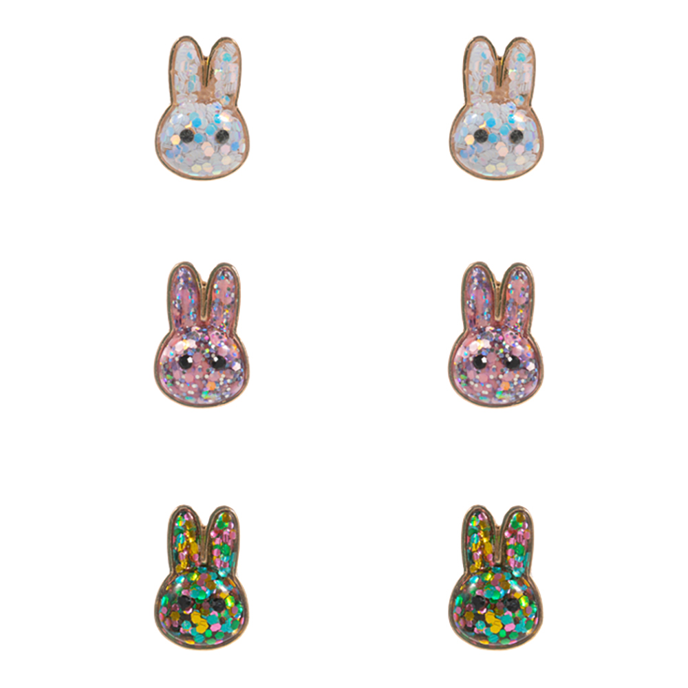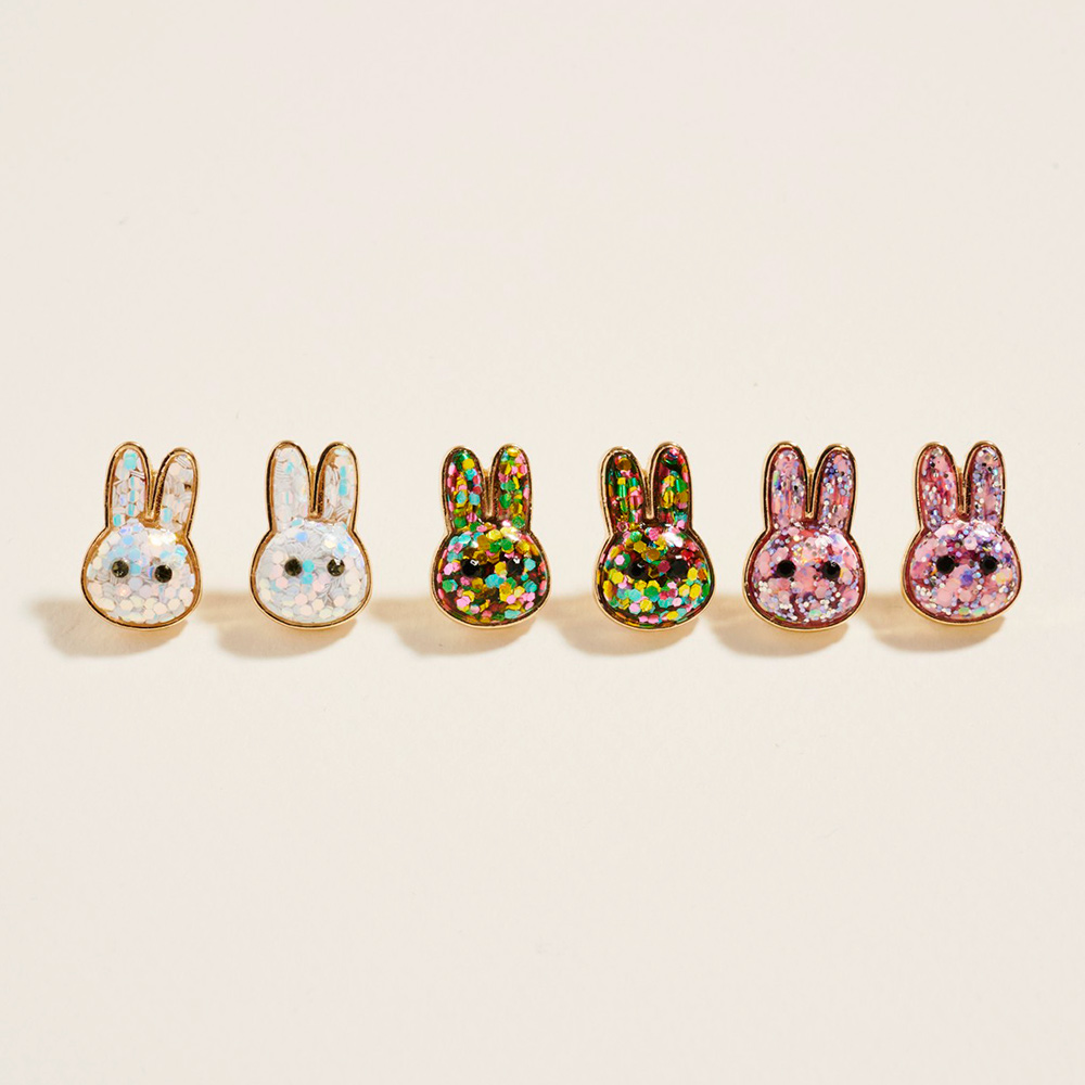 Details • Size : 0.4" X 0.7" • Titanium Post Back • This bunny stud earrings set features multiple pairs of playful rabbit designs with a sparkling finish for fun mix-and-match styling. Lightweight and comfortable for everyday wear, they are perfect for gifting, spring themes, or adding a cute touch to casual outfits. A charming accessory set ideal for kids, teens, or novelty jewelry collections. • Hypoallergenic • Lead and Nickel Compliant