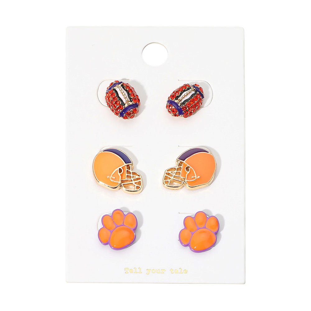 3Pairs - Game Day Spirit Ball Helmet Paw Stud Earring Set