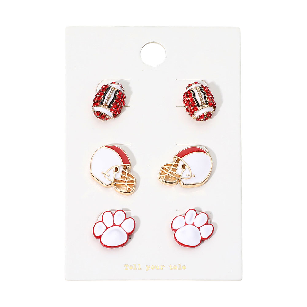 3Pairs - Game Day Spirit Ball Helmet Paw Stud Earring Set