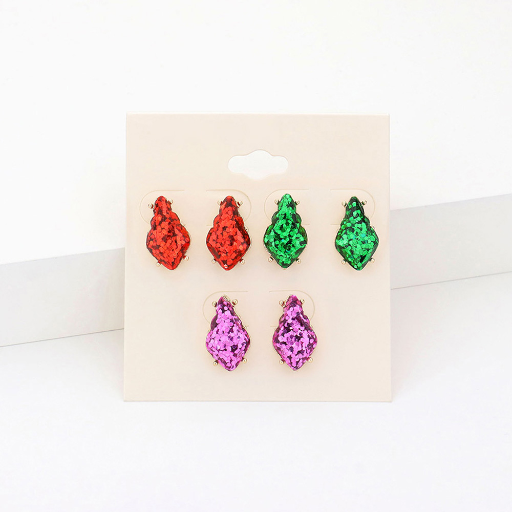 3Pairs - Glittered Petal Stud Earrings