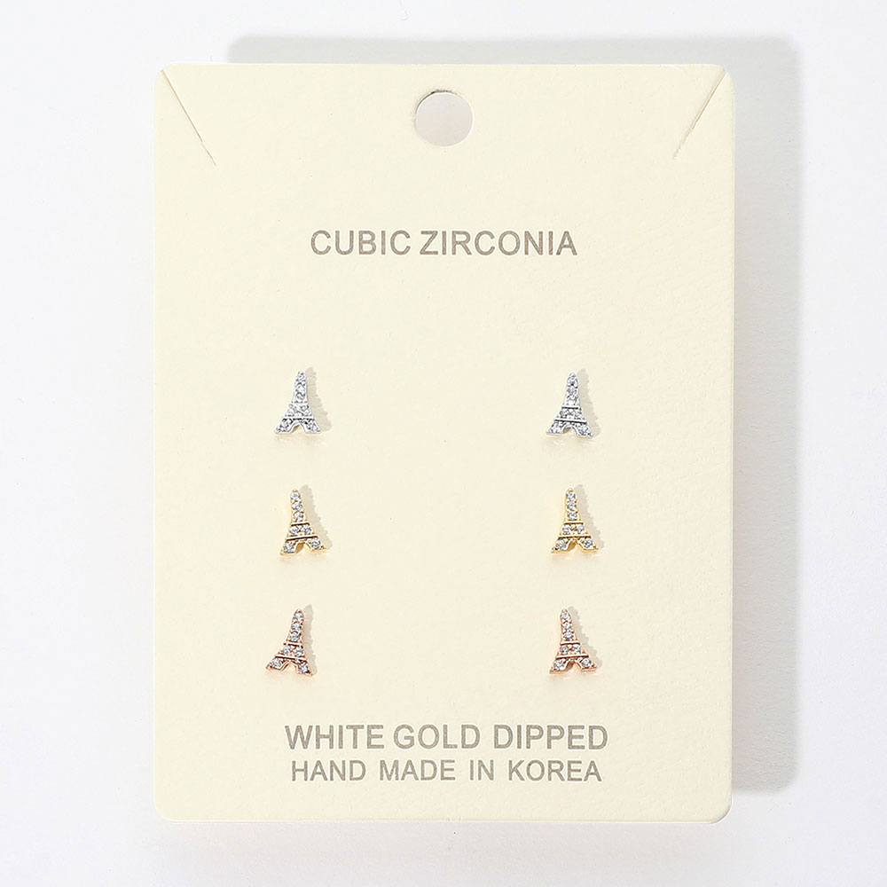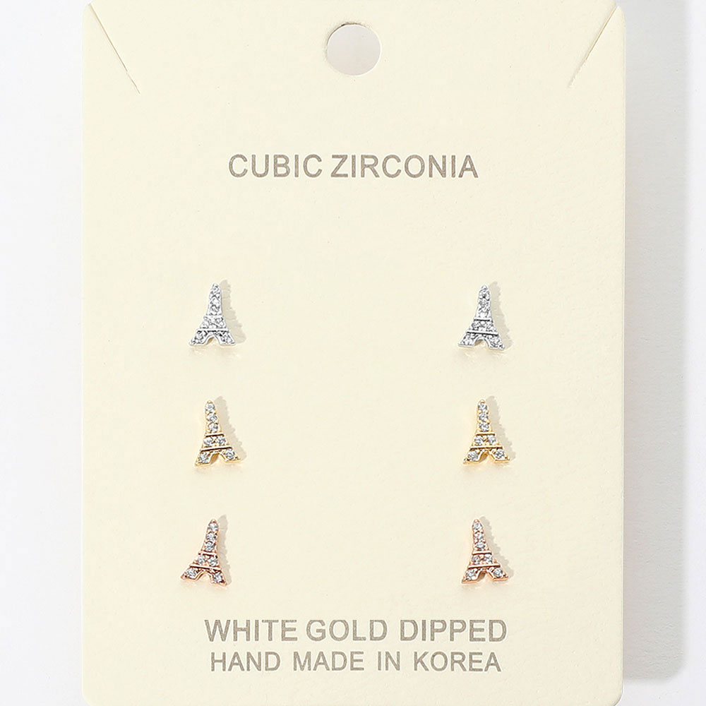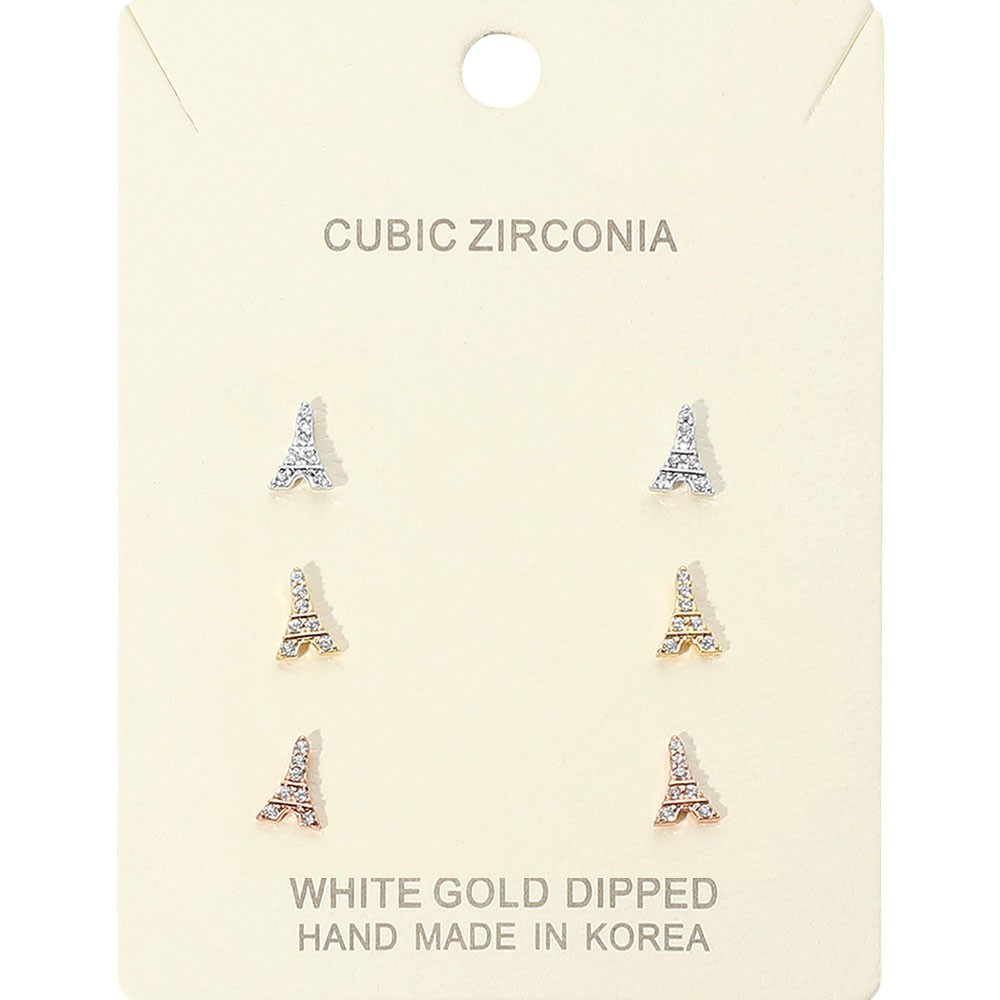 Details • Size : 0.25" L • Post Back • Add Parisian flair to your look with this elegant set of Eiffel Tower stud earrings. Embellished with sparkling cubic zirconia, these handmade earrings offer versatile charm for everyday wear or special occasions. • Lead and Nickel Compliant • Made In Korea • Gold Dipped • CZ Cubic Zirconia