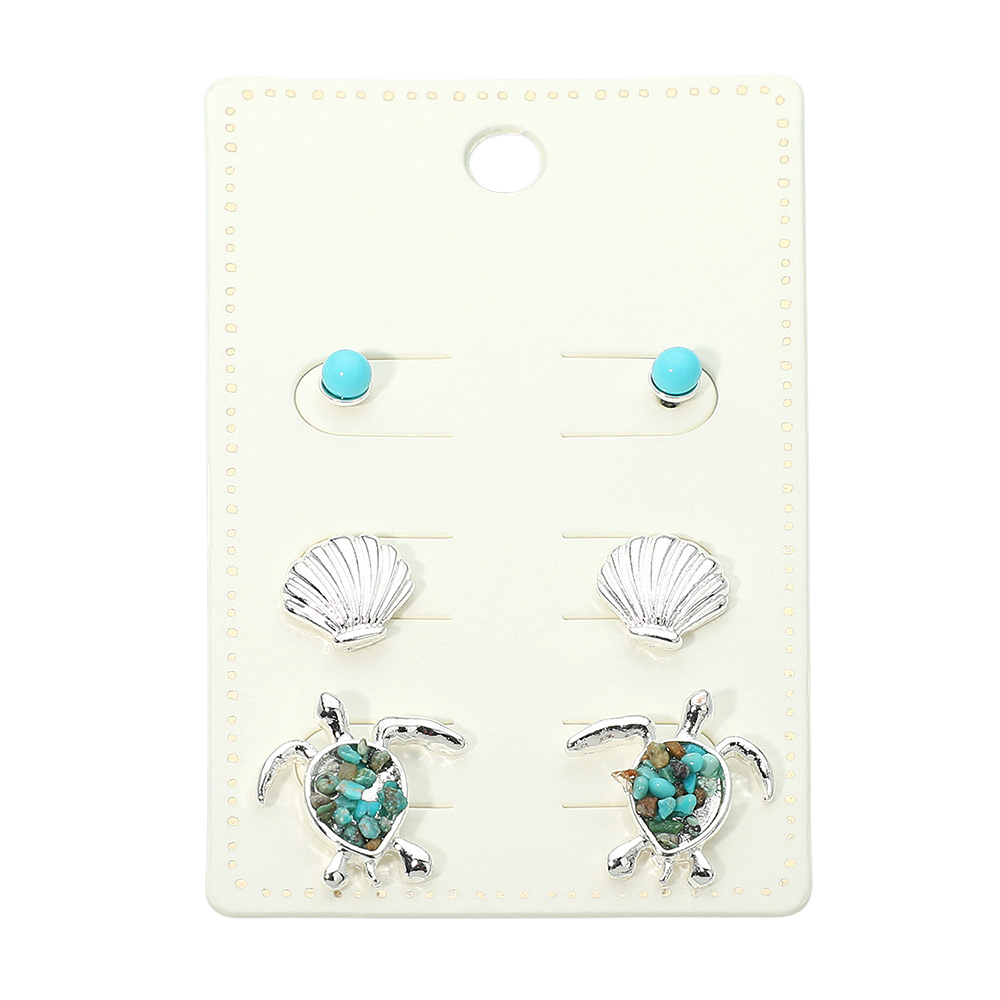 3Pairs - Sea Shell Sea Turtle Stud Earring Set