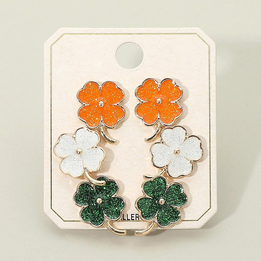 3Pairs - St Patricks Day Shamrock Stud Earring Set 3Pairs - St Patricks Day Shamrock Stud Earring Set