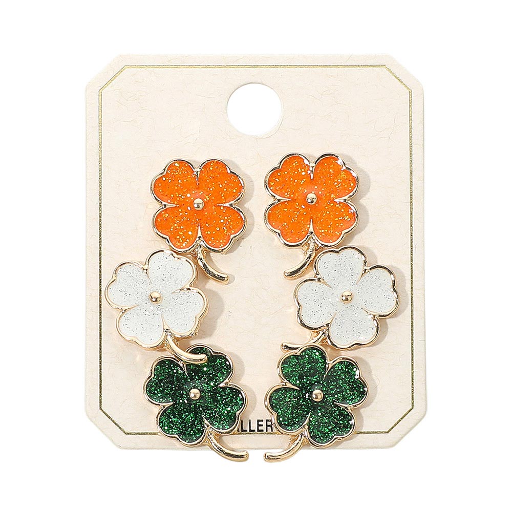 3Pairs - St Patricks Day Shamrock Stud Earring Set