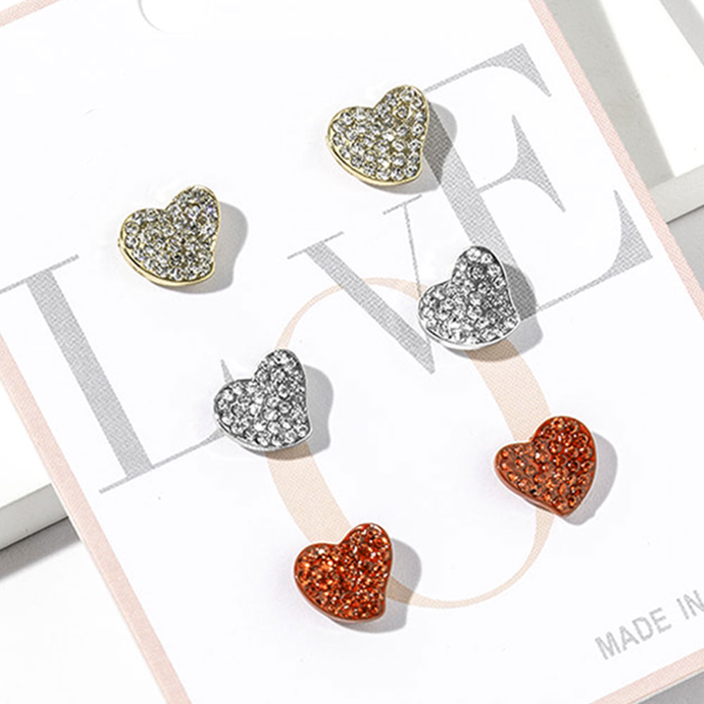 3Pairs - White Gold Dipped Rhinestone Pave Heart Stud Earring Set