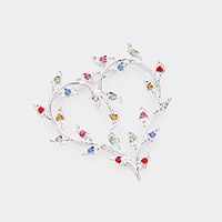 Round Stone Centered Rhinestone Embellished Branch Flower Pin Brooch