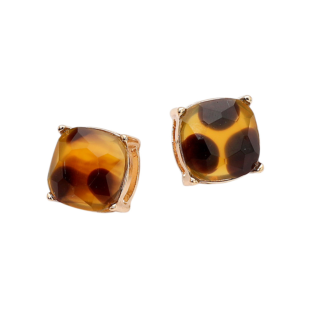 Details • Size : 0.5" X 0.5" • Post Back • Add a touch of refined style with these faceted animal print cushion stud earrings. Featuring a softly rounded shape and elegant gemstone-inspired detailing, they bring a sophisticated sparkle perfect for day or night. Their classic yet modern design makes them a versatile favorite for any occasion. • Lead and Nickel Compliant