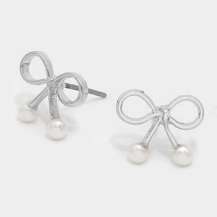 Pearl Pointed Enamel American USA Flag Bow Stud Earrings