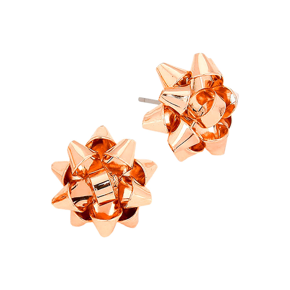 Details • Size : 0.6" X 0.6" • Post Back • Add festive charm to your look with these gift bow stud earrings. Featuring a playful, dimensional bow design, they’re perfect for holiday parties, birthdays, or everyday flair. Lightweight and eye-catching, they make a fun statement with any outfit or occasion. • Lead and Nickel Compliant
