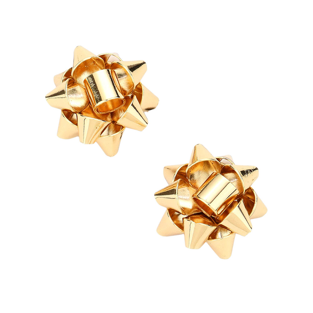 Details • Size : 0.75" X 0.75" • Post Back • Add a playful festive touch with these charming gift bow earrings. Designed to resemble classic ribbon bows, they bring a fun, whimsical accent to your holiday outfits or party looks. Perfect for themed events, celebrations, or gifting, offering a unique and cheerful accessory choice. • Lead and Nickel Compliant