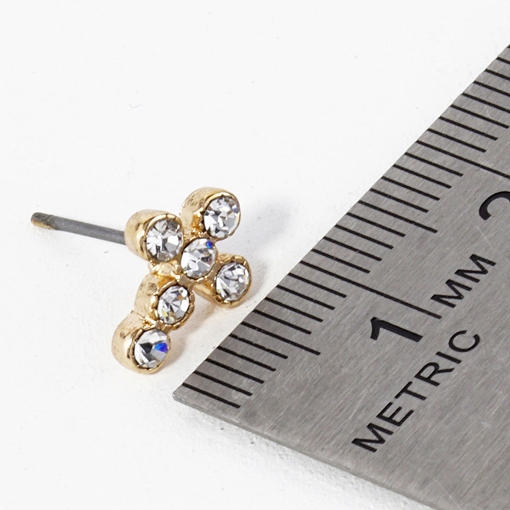 Details • Size : 0.3" X 0.4" • Post Back • Classic crystal cross stud earrings designed for timeless appeal and everyday versatility. This elegant stud style adds subtle sparkle and meaningful charm, making it ideal for casual wear, special occasions, gifting, or faith-inspired collections. A refined accessory that pairs effortlessly with layered looks or minimalist styling. • Lead and Nickel Compliant