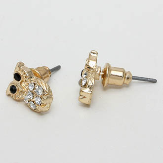Metal Hoop Rhinestone Embellished Owl Link Pin Catch Earrings