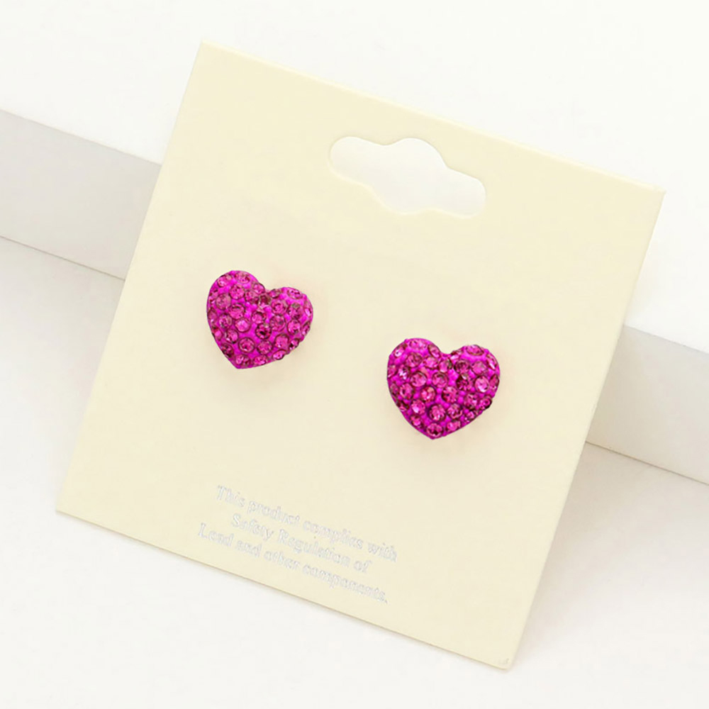 Crystal Pave Heart Stud Earrings