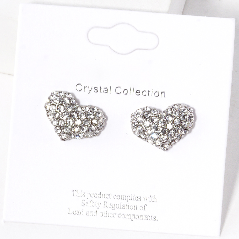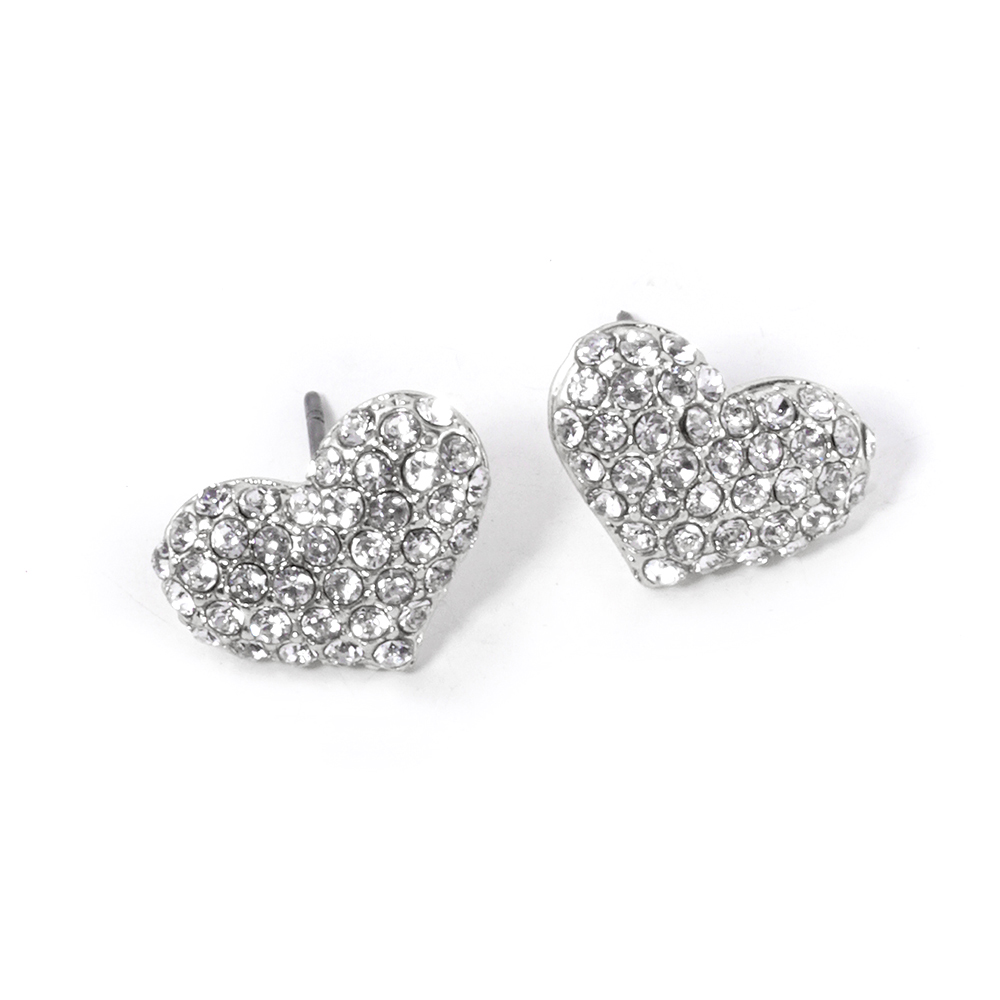 White Gold Dipped Crystal CZ Stone Paved Heart Top Pearl Dangle Earrings