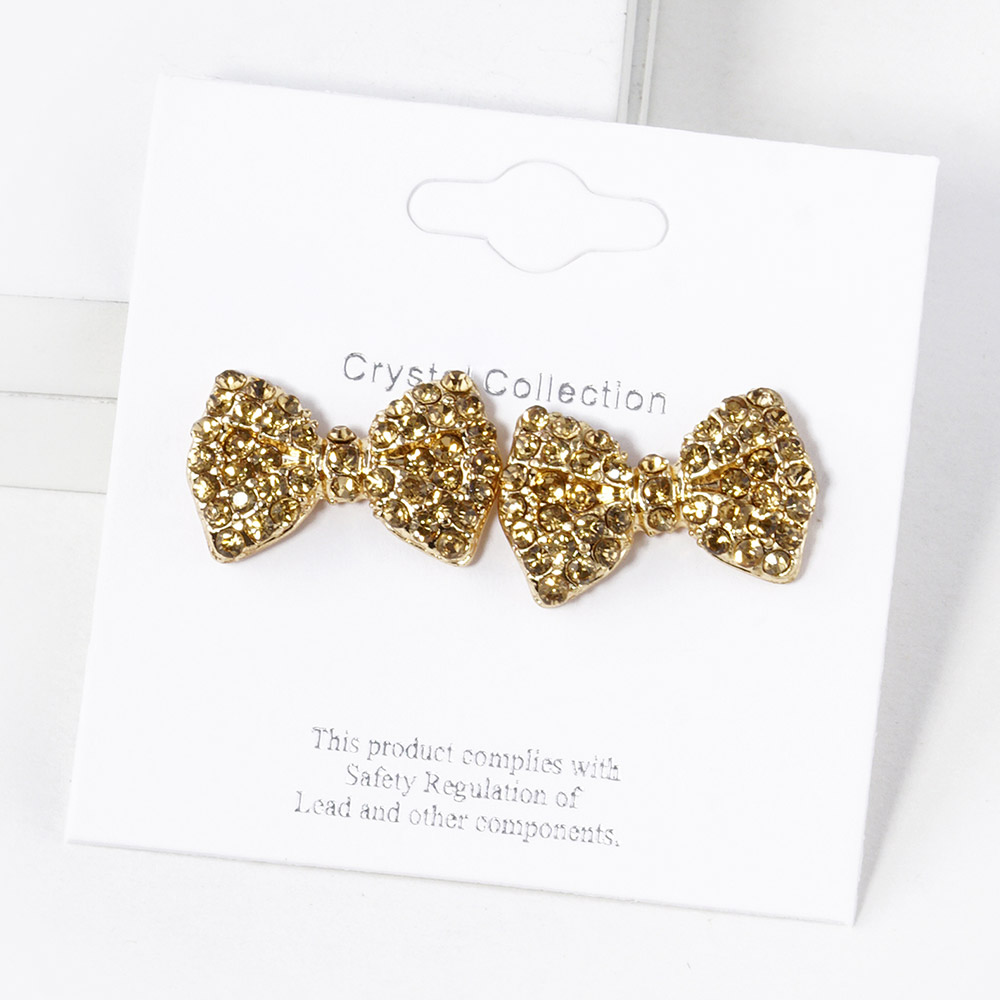 12PCS - Pearl Rhinestone Paved Bow Barrettes