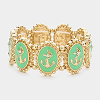 Striped Lacquered Enamel Anchor Disc Pendant Necklace