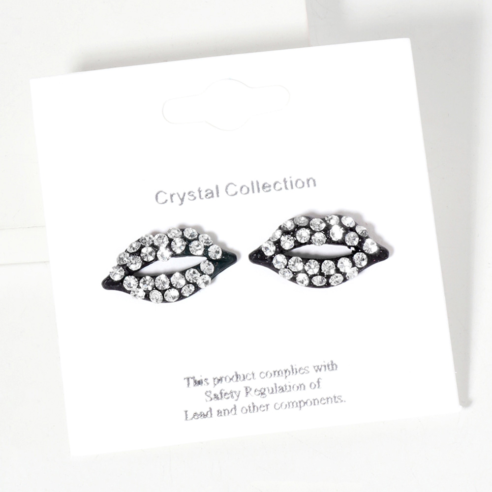 Crystal Rhinestone Paved Lips Stud Earrings