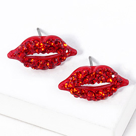 Crystal Rhinestone Paved Lips Stud Earrings