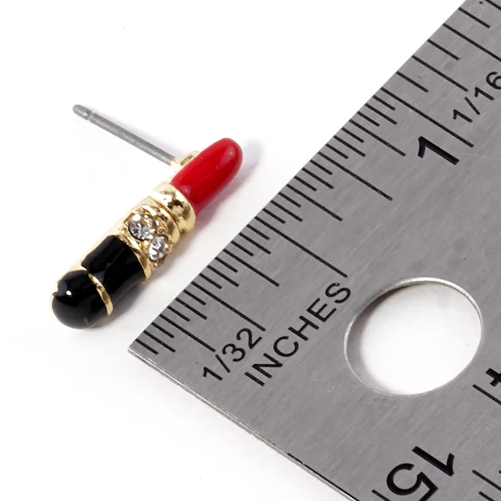 Crystal Stone Paved Enamel Lipstick Stud Earrings Crystal Stone Paved Enamel Lipstick Stud Earrings Crystal Stone Paved Enamel Lipstick Stud Earrings