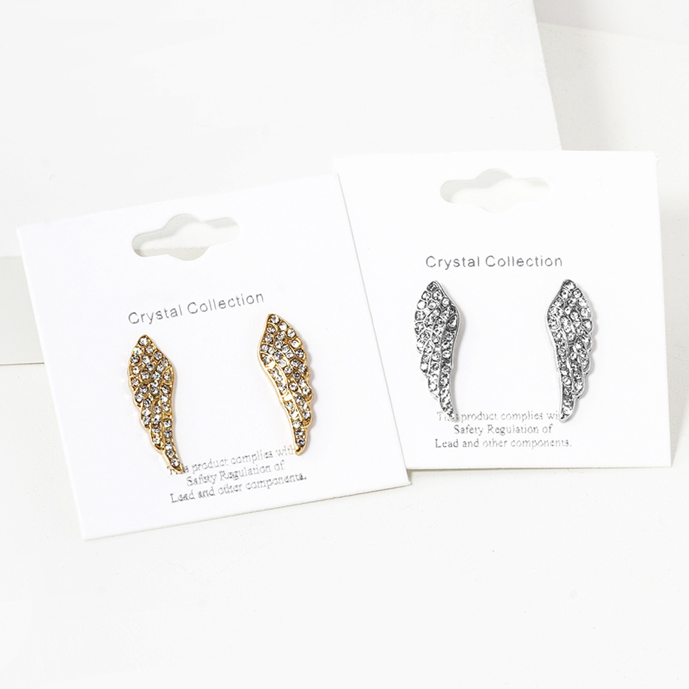 Gold Dipped CZ Stone Paved Angel Wing Chain Ear Cuff Earrings