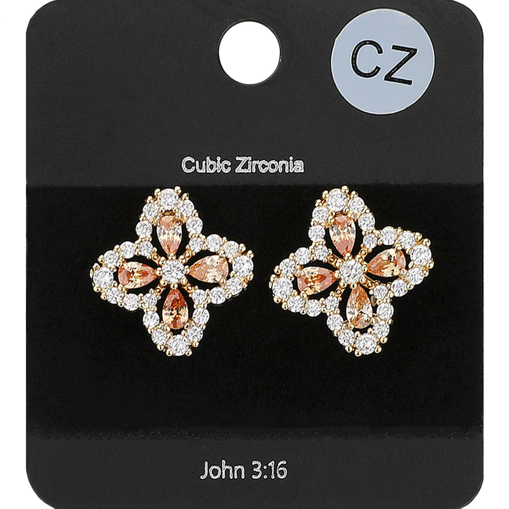 White Gold Dipped CZ Quatrefoil Charm Bracelet