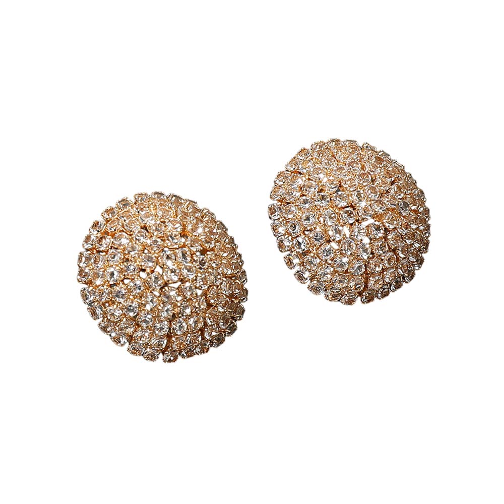• Bold dome stud earrings featuring a rounded silhouette fully covered with closely set faceted stones for intense sparkle and dimension. Designed to elevate both everyday and dressy looks, these statement studs offer a polished finish that adds refined glamour, eye-catching texture, and timeless appeal to any jewelry collection.