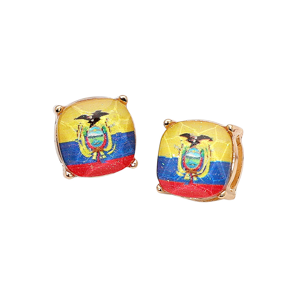 • Show your pride with these Ecuador flag stud earrings, featuring the iconic sun emblem design framed in a sleek setting. Perfect for patriotic celebrations, travel, or everyday wear, these earrings combine national spirit with contemporary elegance for a meaningful, stylish accessory.