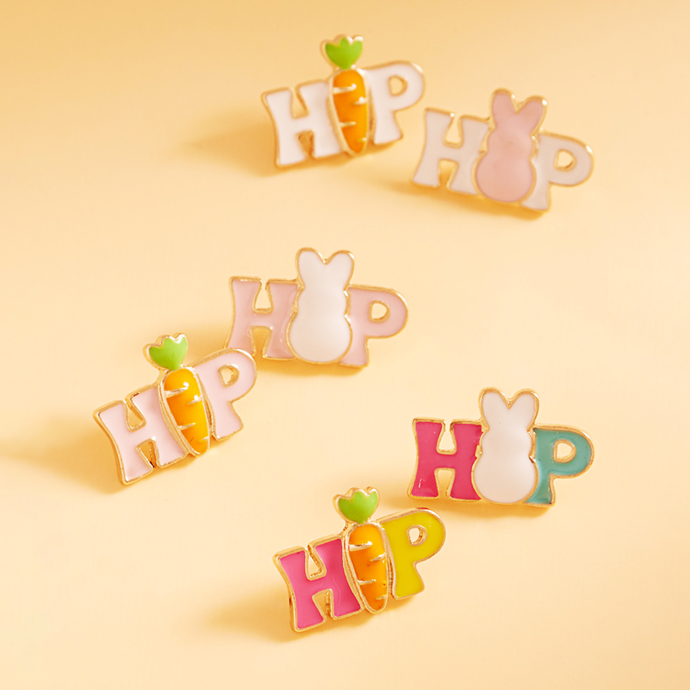 Enamel Easter HIP HOP Message Stud Earrings