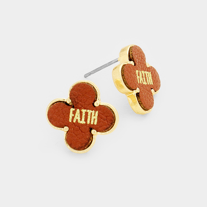 "Faith" Leather Quatrefoil Clover Stud Earring