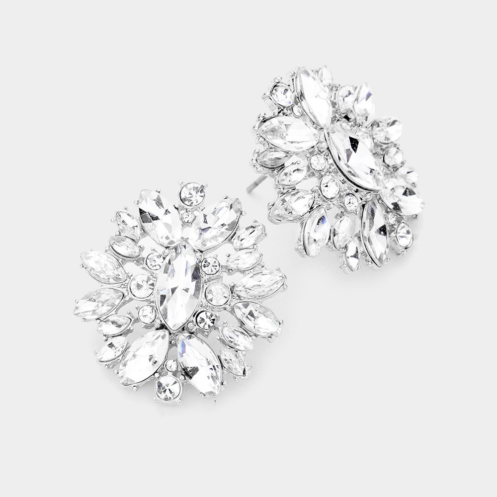 Floral Stone Cluster Accent Rhinestone Paved Necklace