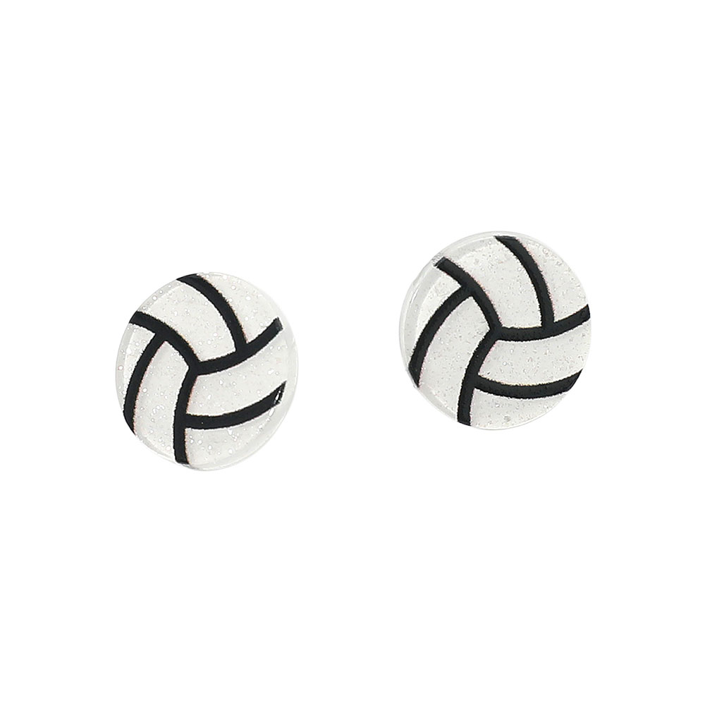 Details • Size : 0.6" X 0.6" • Post Back • Round volleyball stud earrings featuring a classic panel-line design for a fun, sporty look. Perfect for game day, team events, volleyball fans and everyday wear. A lightweight accessory that adds athletic charm and makes a great gift for players and supporters. • Lead and Nickel Compliant