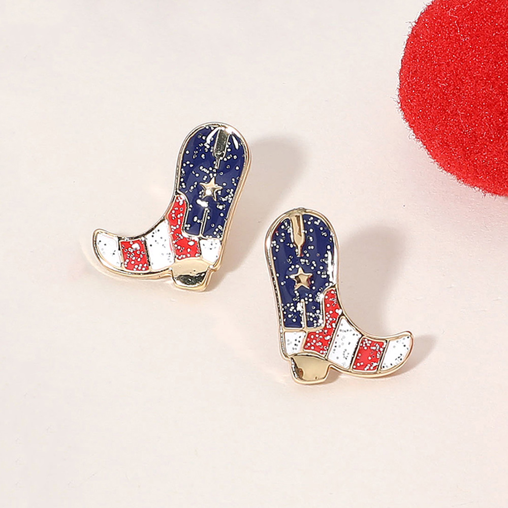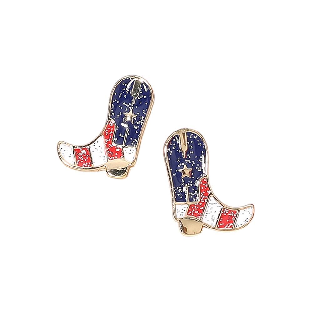 Glittered Enamel American USA Flag Cowboy Boot Stud Earrings