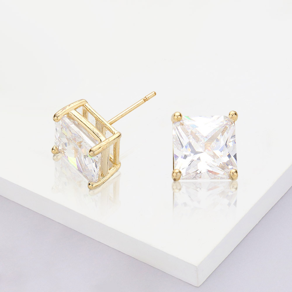 Gold Dipped 7mm Square CZ Stone Stud Earrings