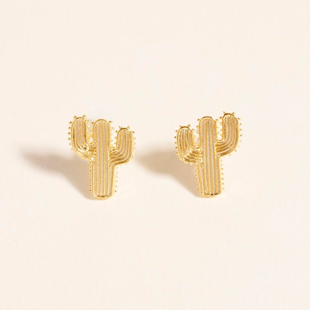 Details • Size : 0.3" X 0.3" • Post Back • Western-inspired cactus stud earrings with a playful desert motif that adds character to everyday looks. Ideal for rodeo outfits, country style, festival wear, and novelty gift displays. A fun addition to western boutiques, themed collections, and customers drawn to bold, free-spirited accessories. • Gold Dipped • Hypoallergenic • Made In Korea