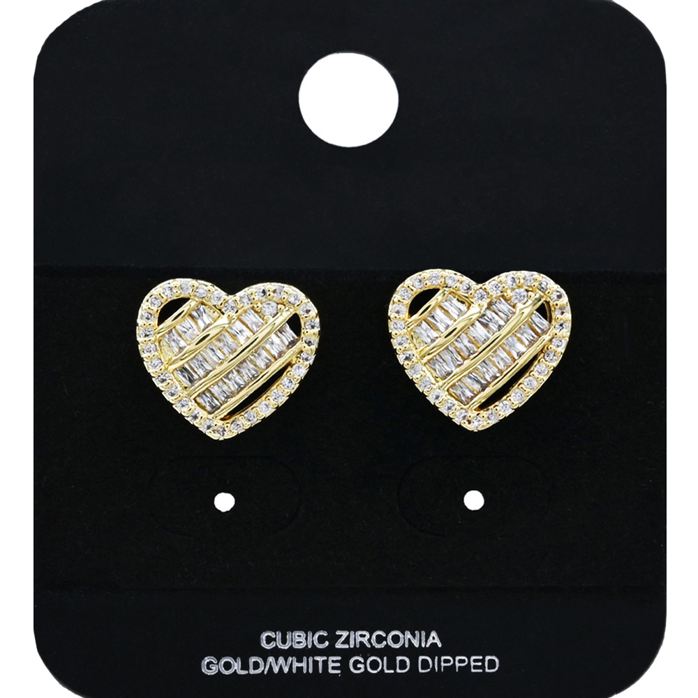 Details • Size : 0.5" X 0.5" • Post Back • Add charm to any outfit with these elegant heart-shaped cubic zirconia stud earrings. Designed to shine from every angle, they bring a timeless sparkle perfect for daily wear or special occasions. A versatile accessory to elevate your jewelry collection. • CZ Cubic Zirconia • Gold Dipped • Lead and Nickel Compliant