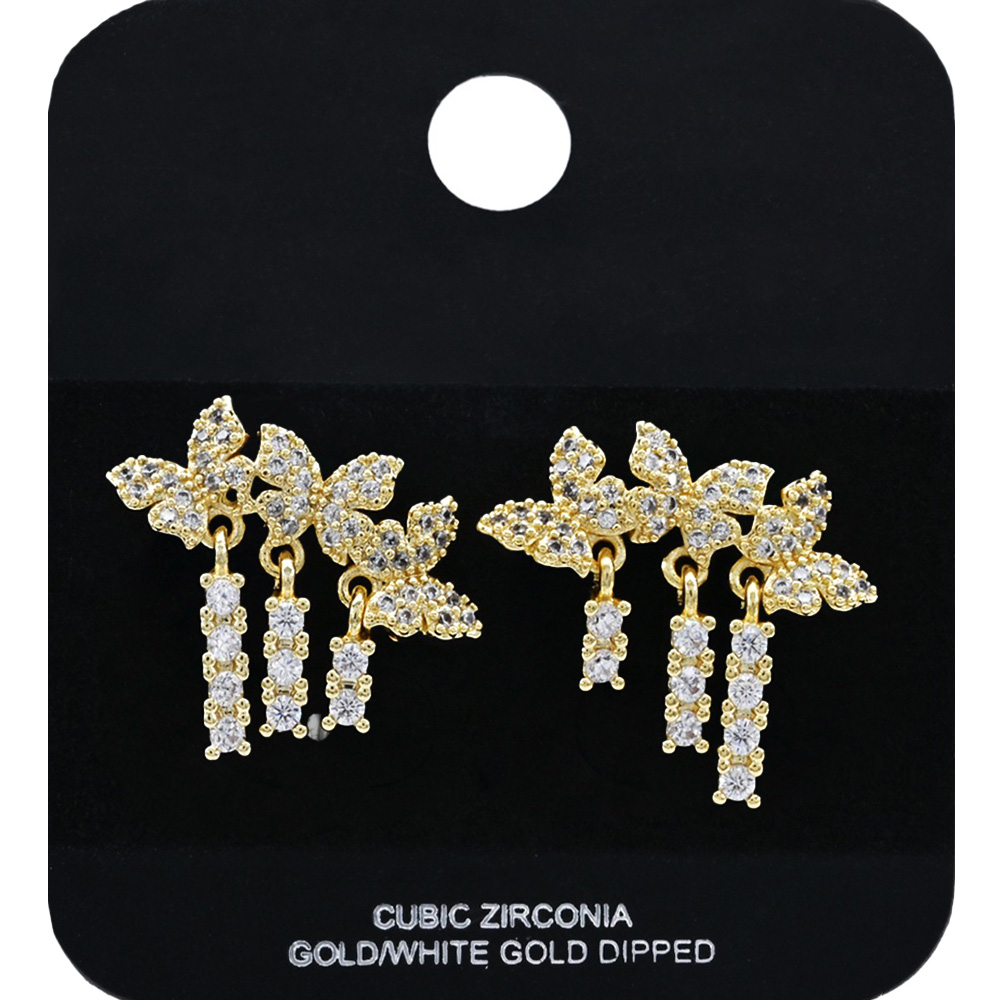 Details • Size : 0.8" X 0.7" • Post Back • Discover these stunning butterfly-inspired cluster drop earrings, designed with intricate detailing and shimmering accents. Perfect for adding a refined touch to both casual and formal outfits, they bring elegance and charm to your jewelry collection. • CZ Cubic Zirconia • Gold Dipped • Lead and Nickel Compliant