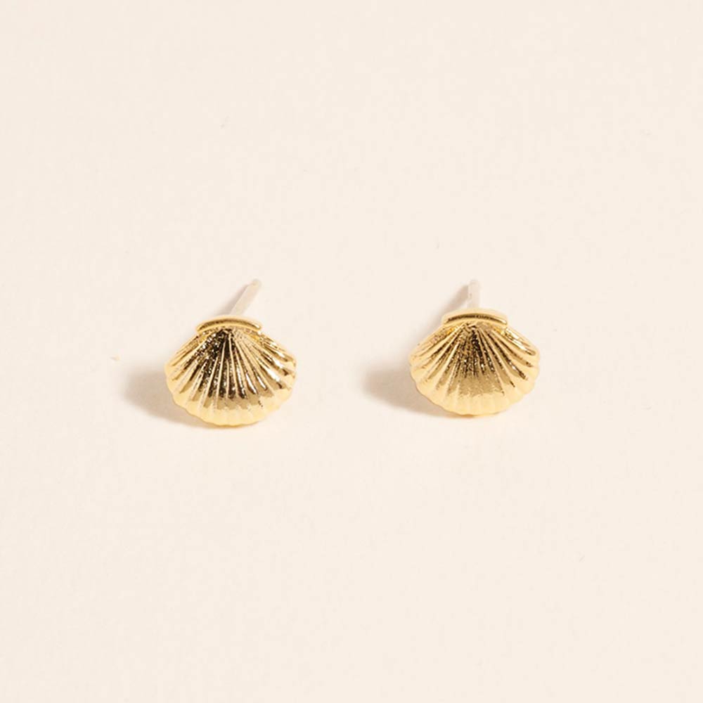Details • Size : 0.25" X 0.25" • Post Back • Seashell stud earrings inspired by ocean elements and clean, minimalist design. Ideal for everyday wear, summer outfits, vacations, or gifting, these petite earrings add a subtle coastal accent that layers easily with other jewelry while offering a timeless, versatile look for any occasion. • Hypoallergenic • Made In Korea • Gold Dipped
