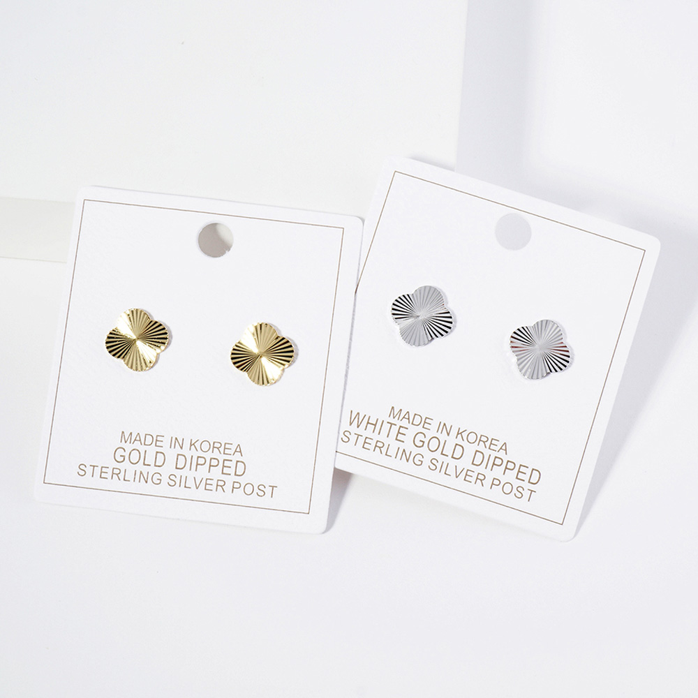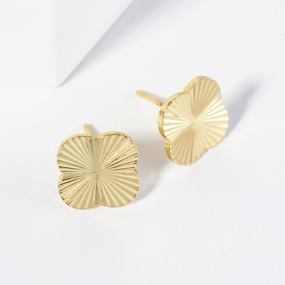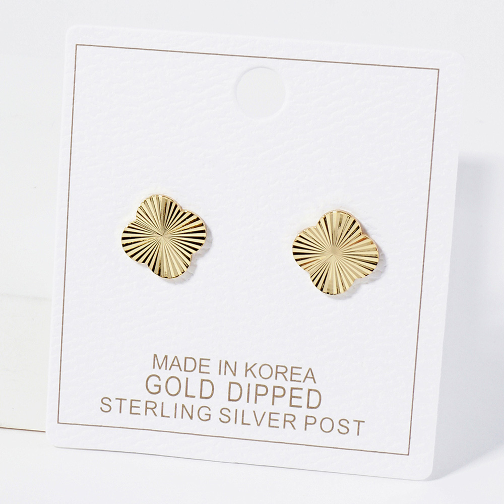 Gold Dipped Textured Metal Quatrefoil Stud Earrings