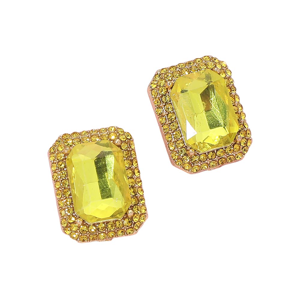 • Make a statement with these iridescent rectangular stud earrings. Framed with sparkling rhinestones, they’re the perfect accessory for adding refined glamour to any outfit, from formal events to everyday chic.