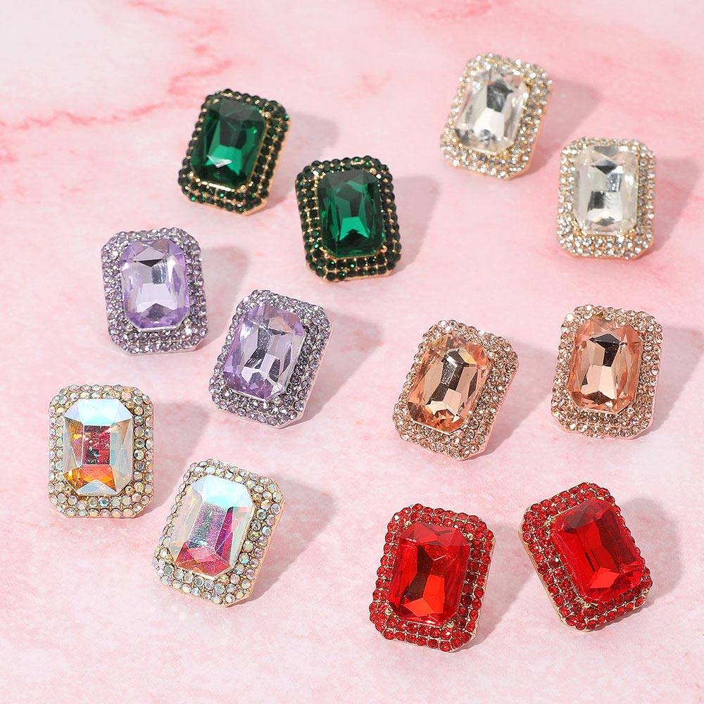 Iridescent Rectangular Rhinestone Evening Stud Earrings Iridescent Rectangular Rhinestone Evening Stud Earrings Iridescent Rectangular Rhinestone Evening Stud Earrings